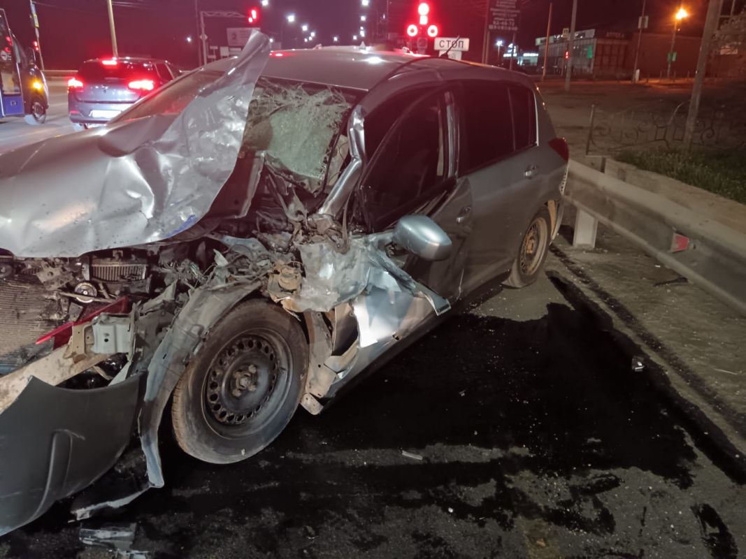Происшествие случилось в 18.50 на ул. Магистральная.  27-летний водитель за рулем автомобиля "Ниссан Тиида" въехал в стоящие перед светофором два автобуса под управлением водителей 1993 и 1978 годов рождения. Судя по видео с места происшествия, водитель легковушки несся с приличной скоростью.