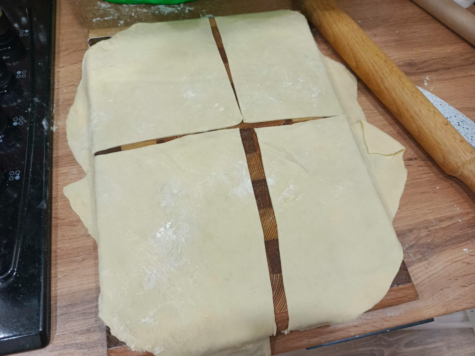 После этого каждую часть раскатываем до очень тонкой толщины. Не забываем посыпать мукой чуть-чуть.