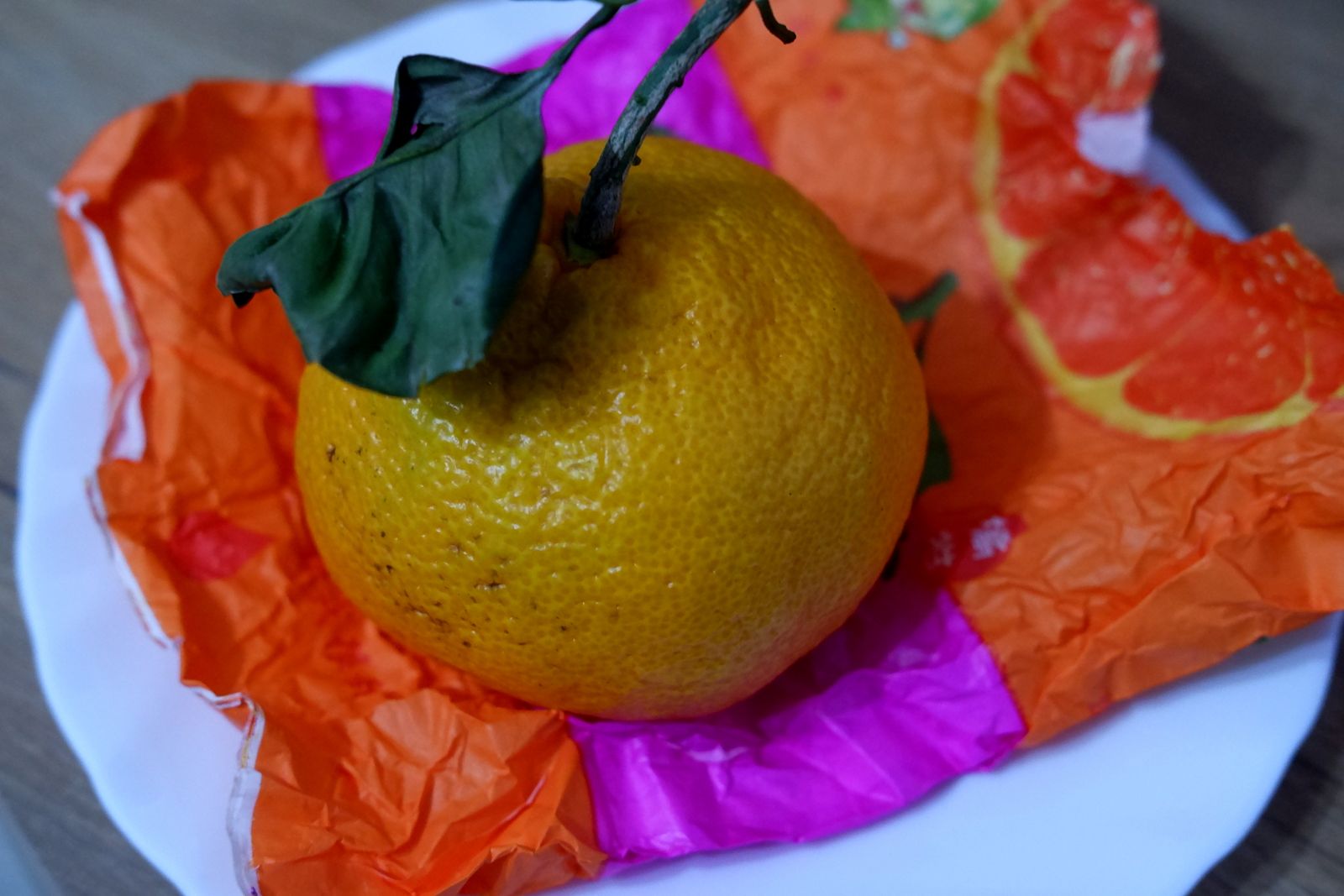 Сорт Халлабон. Довольно крупные мандарины с «шишкой» у плодоножки и листочками. На этикетке обозначено, что вырастили их в Китае. Цена со скидкой — 249 руб. за кило (без скидки — 349 руб.). Каждый мандарин упакован в бумажный пакетик. Один мандарин при покупке вытянул на 64 рубля. Почистился легко. На вкус кисло-сладкий, без косточек. Что-то особенного во вкусе мы не заметили. Удивил только размер долек.