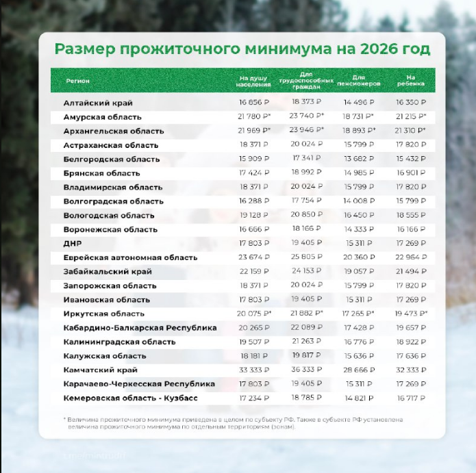 Минтруд рассказал, какой прожиточный минимум в регионах России на 2026 год.