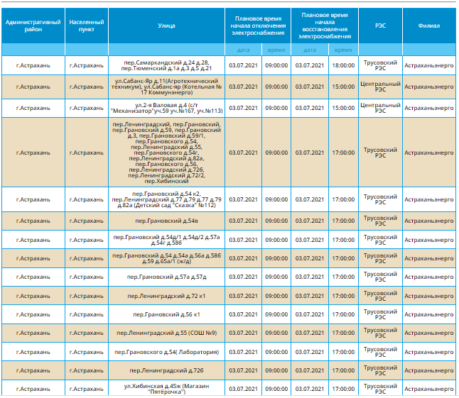 В Астрахани ожидается плановое отключение света. Со списком адресов, которые попадут под отключения можно ознакомиться ниже: