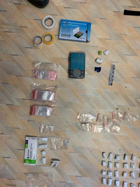 На месте преступления и по адресу проживания у злоумышленницы были найдены 164,82 грамма веществ, которые согласно экспертизе содержат в своем составе наркотическое средство N-метилэфедрон и предметы для фасовки наркотиков: перчатки, изолента, зип-локи и электронные весы.