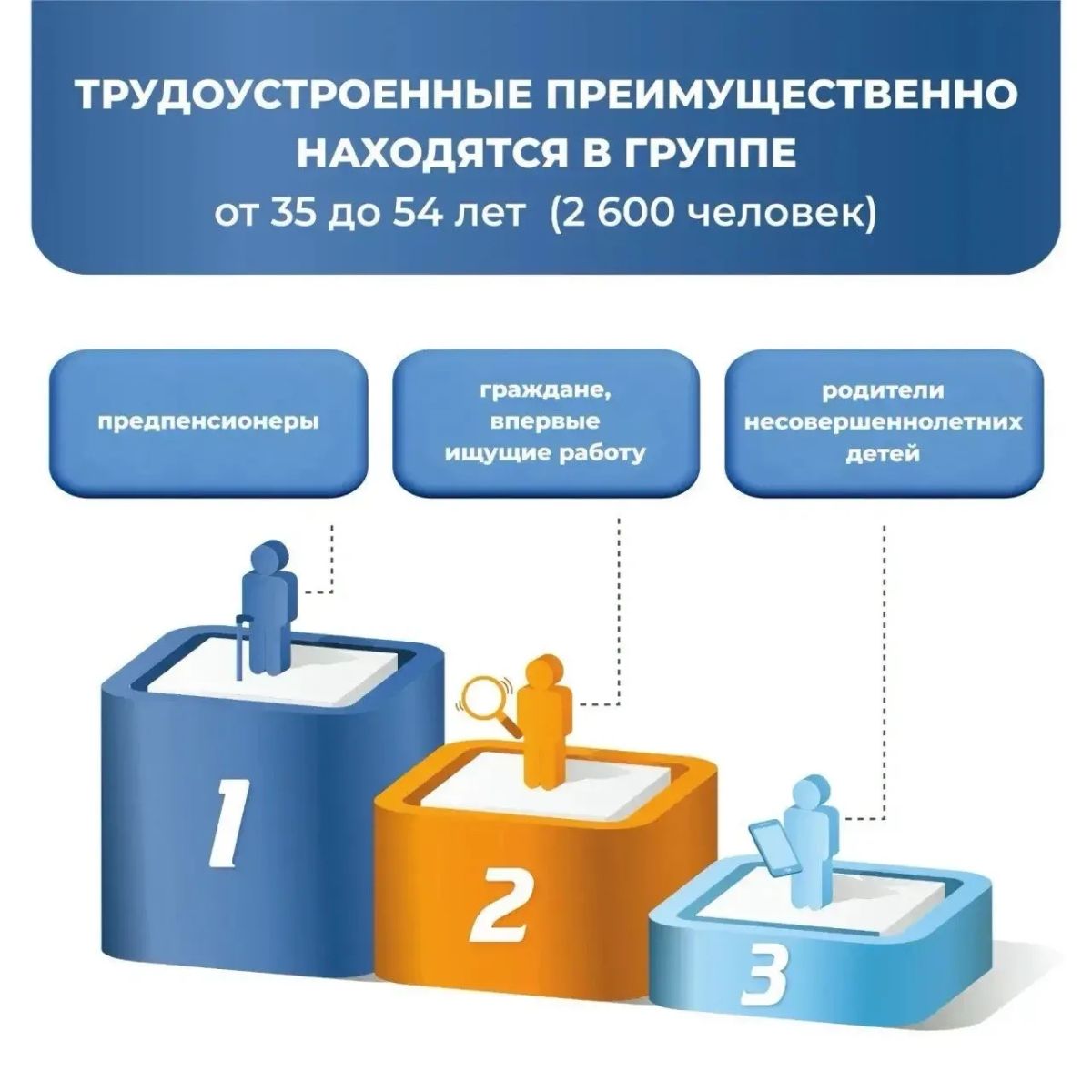Наибольшие шансы найти работу в регионе имеют граждане в возрасте от 35 до 54 лет. В числе самых активных групп — предпенсионеры, молодые люди, впервые вступающие на рынок труда, а также родители, воспитывающие несовершеннолетних детей.