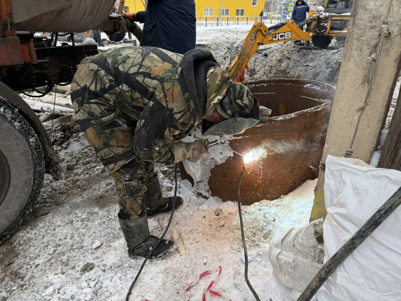 Руслан Мендгалиев, Рамиль Исаев и Павел Зубков выполняли самый сложный фронт работ: делали стыки и герметизацию нижней части трубы, в месте прорыва вода шла непрерывно. Водитель экскаватора Виктор Кубраков отводил промерзающий грунт и воды. Водитель ассенизационной техники Алтынбек Ундасинов осушал территорию в течение всего происшествия, в первую очередь прокачивая территорию у домов. Цех повысительно-насосных станций осуществлял постоянный мониторинг придомовых сооружений.