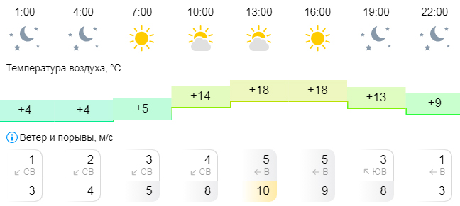 - в Ахтубинском районе ночью +1°, днем +18°, ветер 3-6 м/с;