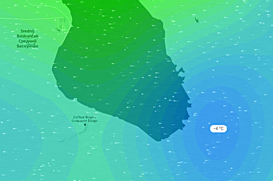 Вот и сегодня на территории области температура воздуха ночью будет колебаться от 0° до +5°, местами заморозки в воздухе и на почве до –1…–4°. По данным метеоресурса Ventusky, локация температурного минимума –4° завтра утром будет находиться в Ахтубинском районе, на территории Богдинско-Баскунчакского заповедника, в окрестностях южной оконечности озера Баскунчак.