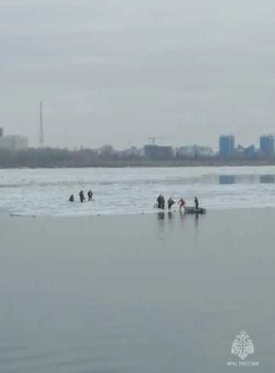 Льдину с множеством рыбаков и ребенком унесло на Волге