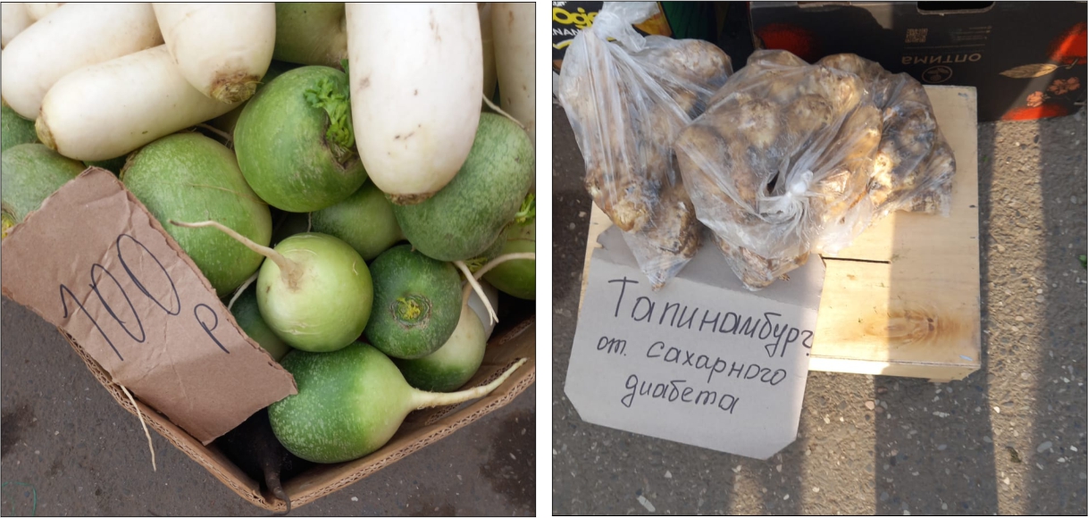 В частности, топинамбур продают по 200 рублей за кило, редьку разных сортов по 100 рублей.