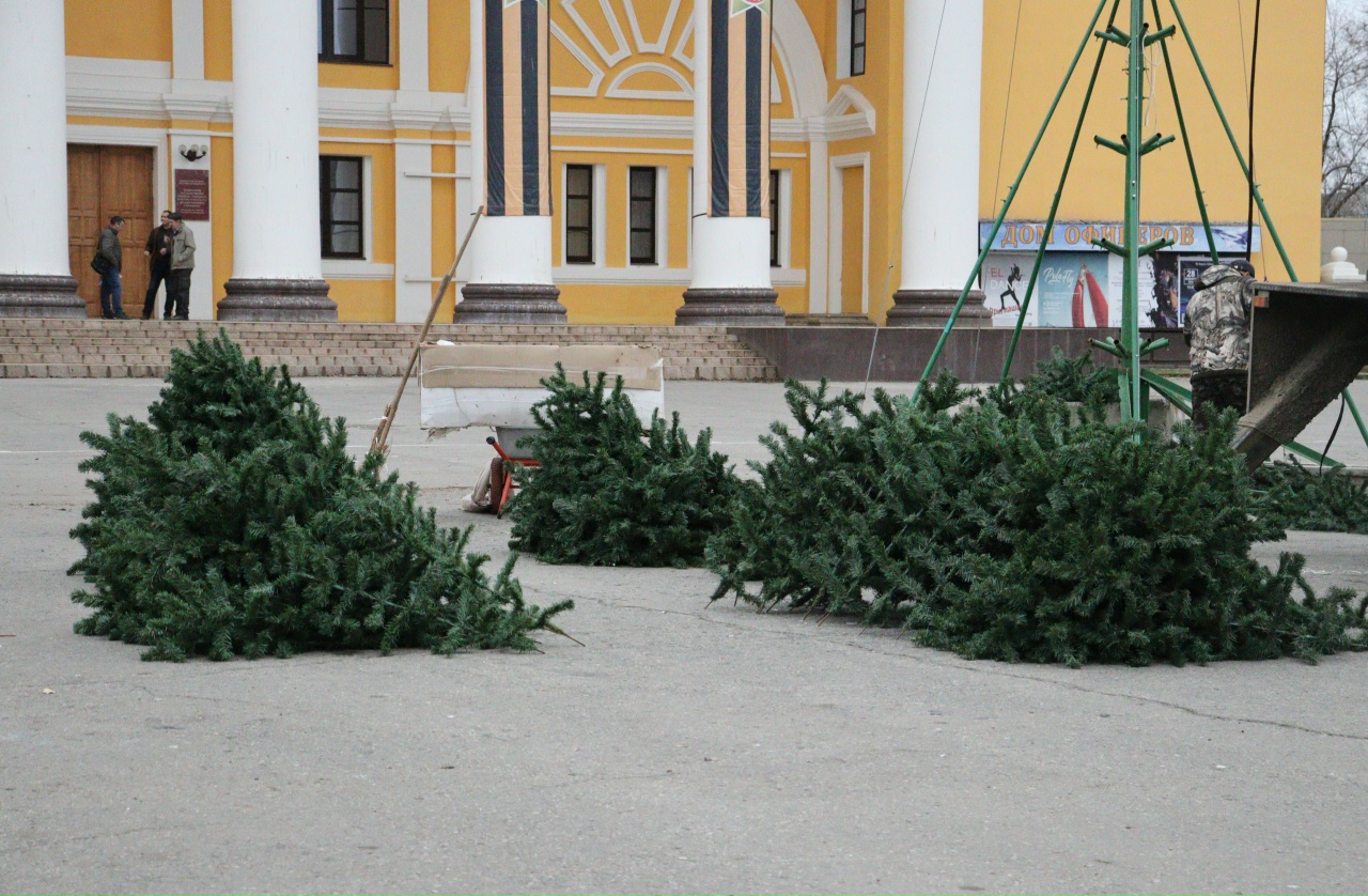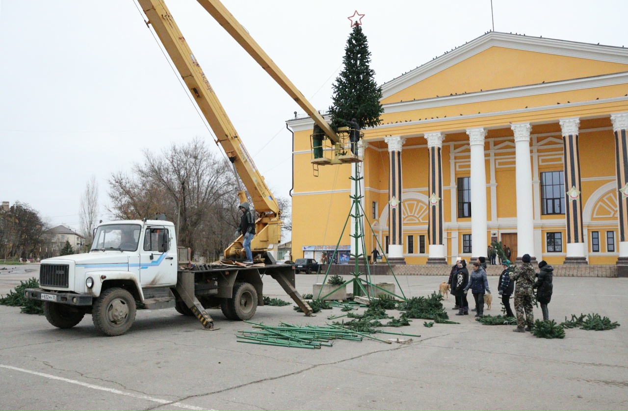 В Ахтубинске Астраханской области начали монтировать городскую ёлку на площади Ленина.