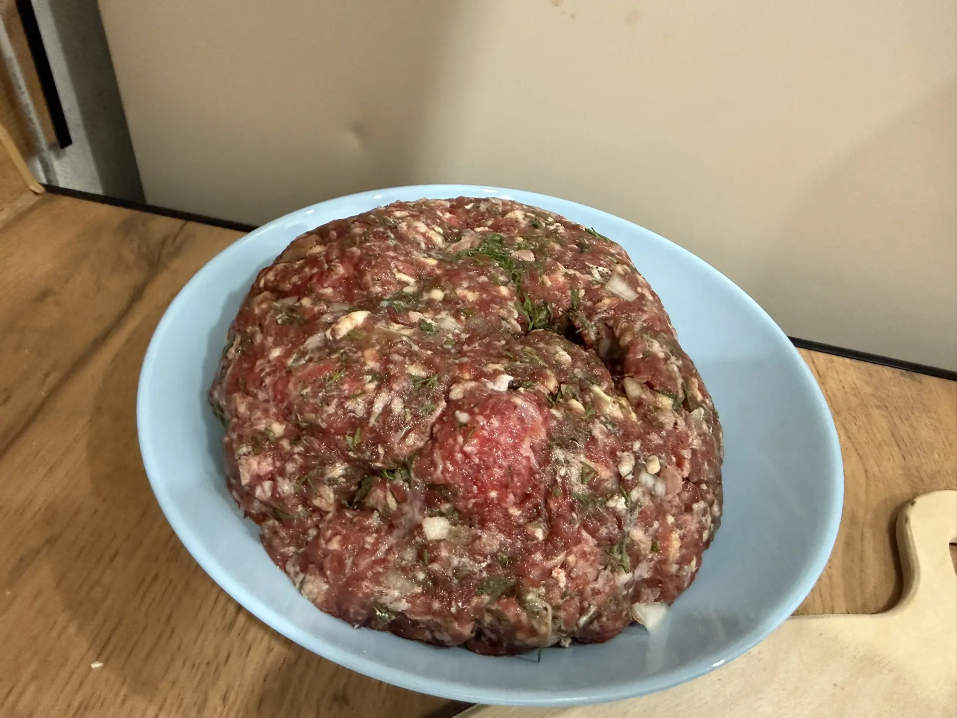 Сегодня мы готовим домашние пельмени. Перекрутили говядину 400 г (200 ₽). В фарш добавили один лучок, одну дольку чеснока, чайную ложку соли, полпучка укропа (на всё ушло 50 ₽).