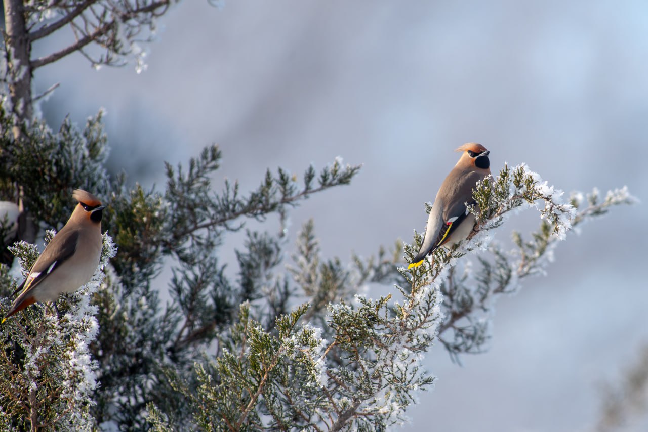 «Они постоянно кочуют стайками с места на место, держатся на вершинах деревьев, а все остальные птицы их гоняют - прежде всего дрозды. Когда свиристели опускаются на кусты можжевельника, чтобы полакомиться их ягодами, дрозды возмущенно кричат и их пугают», - рассказал Владимир Паньков в своем тг-канале.