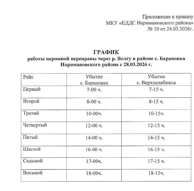 С 28 марта начала действовать паромная переправа через Волгу для жителей сел Барановка и Петропавловка. В администрации Наримановского района отметили, что паром Нариманов - Барановка переходит на работу в штатном режиме.