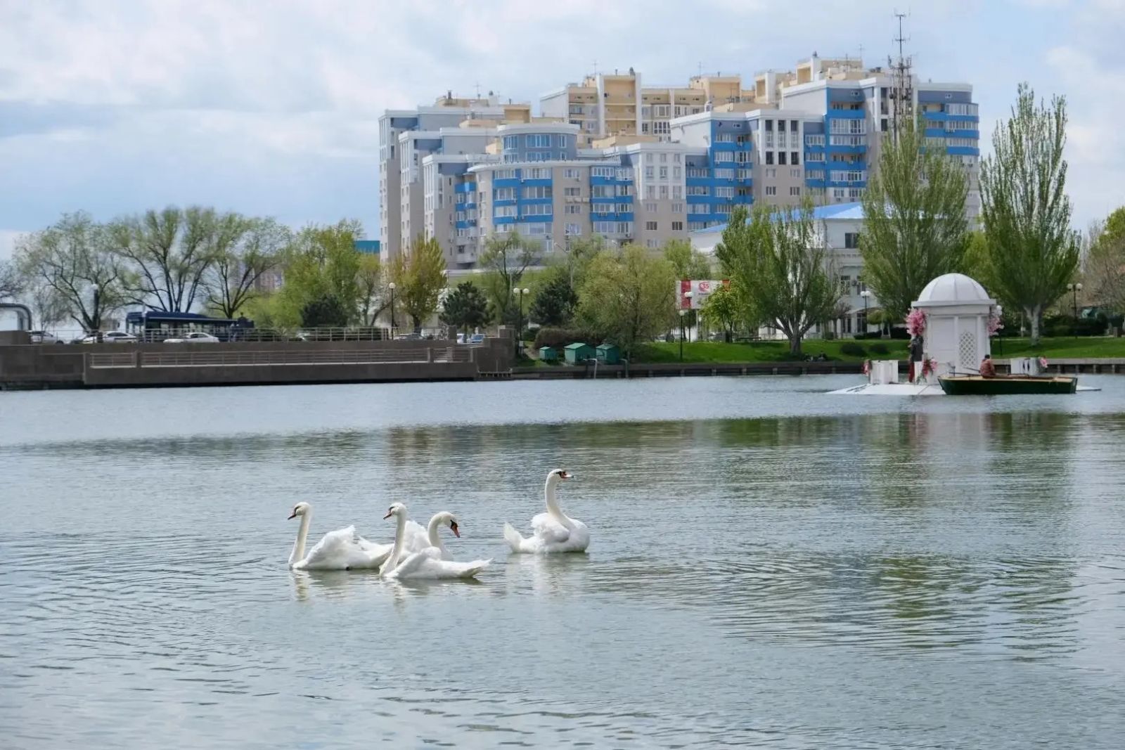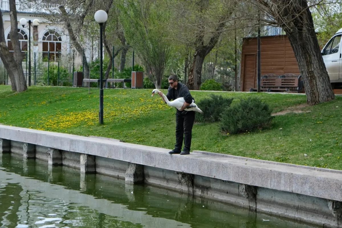 На Лебединое озеро в Астрахани выпустили восемь лебедей. Это птицы, которые зимовали в питомнике «Зеленого города». Они вернулись на озеро в полном составе.