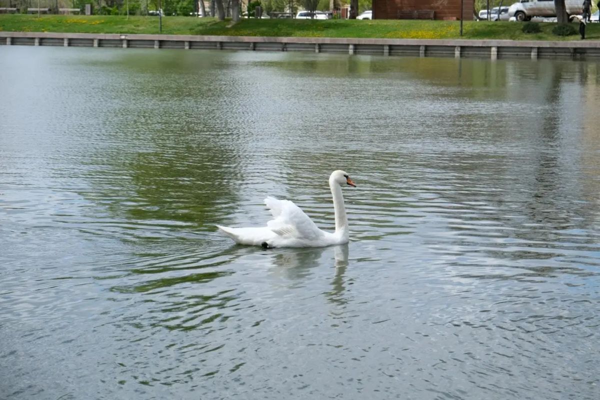 На Лебединое озеро в Астрахани выпустили восемь лебедей. Это птицы, которые зимовали в питомнике «Зеленого города». Они вернулись на озеро в полном составе.